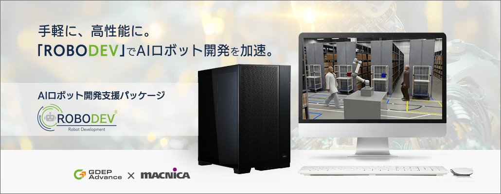 AIとビジュアライゼーションのソリューションカンパニーである株式会社ジーデップ・アドバンス(GDEP Advance,Inc. 本社:東京都中央区、代表取締役CEO:飯野匡道、東証スタンダード 証券コード:5885)と、株式会社マクニカ(本社:神奈川県横浜市、代表取締役社長:原 一将)は、両社共同企画のAIロボット開発支援パッケージ「ROBODEV(ロボデブ)」の提供を開始したことを本日発表いたします。